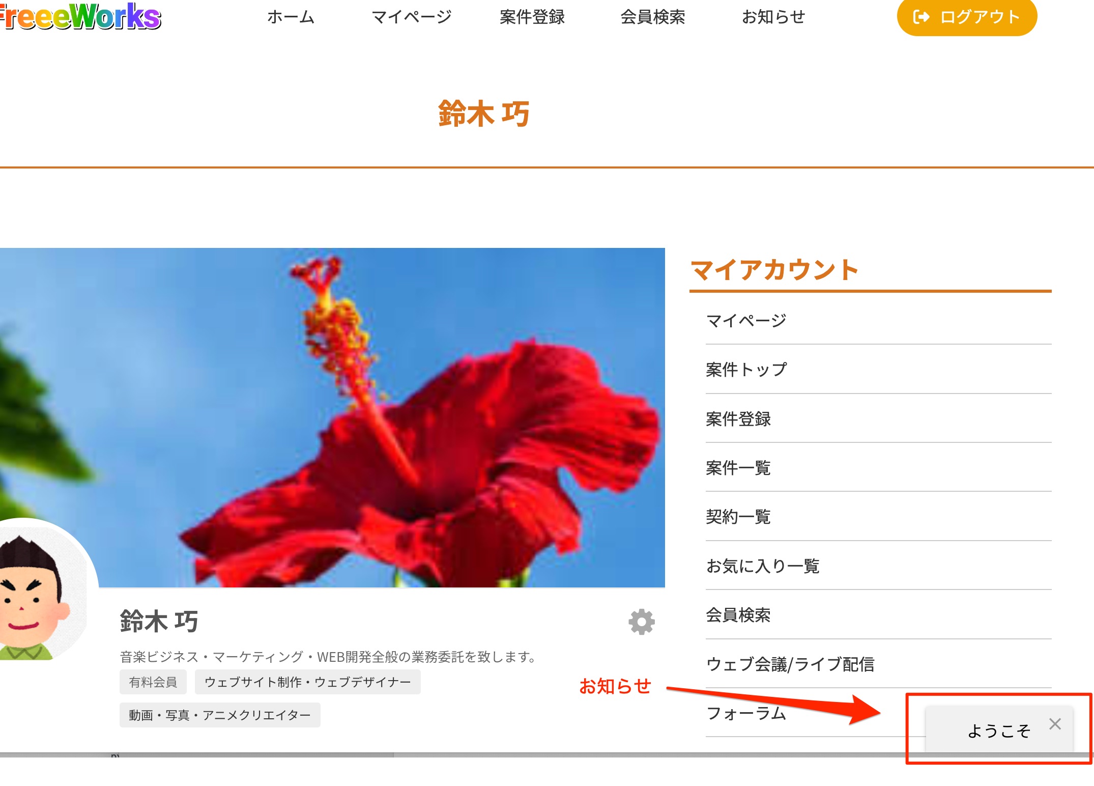 お知らせは運営から会員への皆さまにお知らせする機能です。2種類あります。