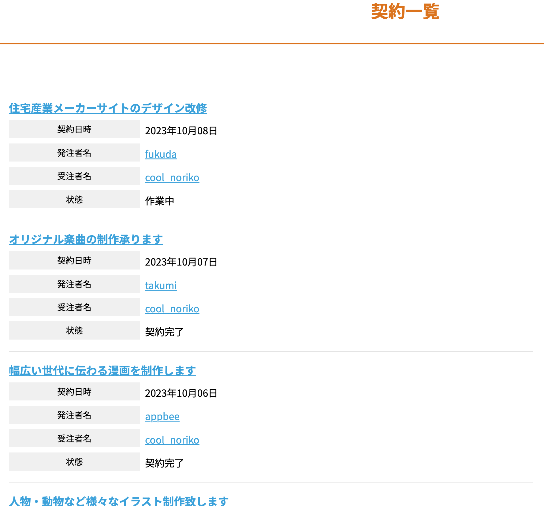 案件名のタイトルをクリックすると契約内容が表示されます。
